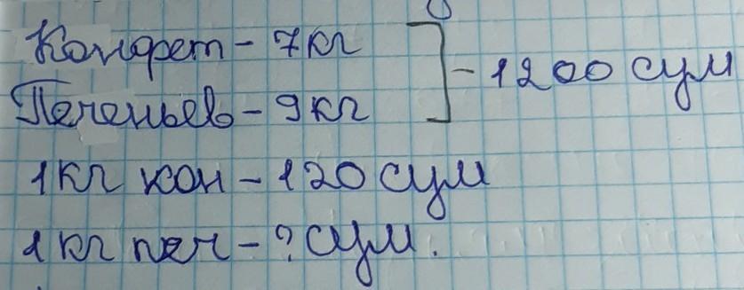 Пошаговое объяснение: 1200 - (120×7) = 1200 - 840 (сумма отданная за 7 кг конфет ) = 360 - сумма , отданная за 9 кг печенья