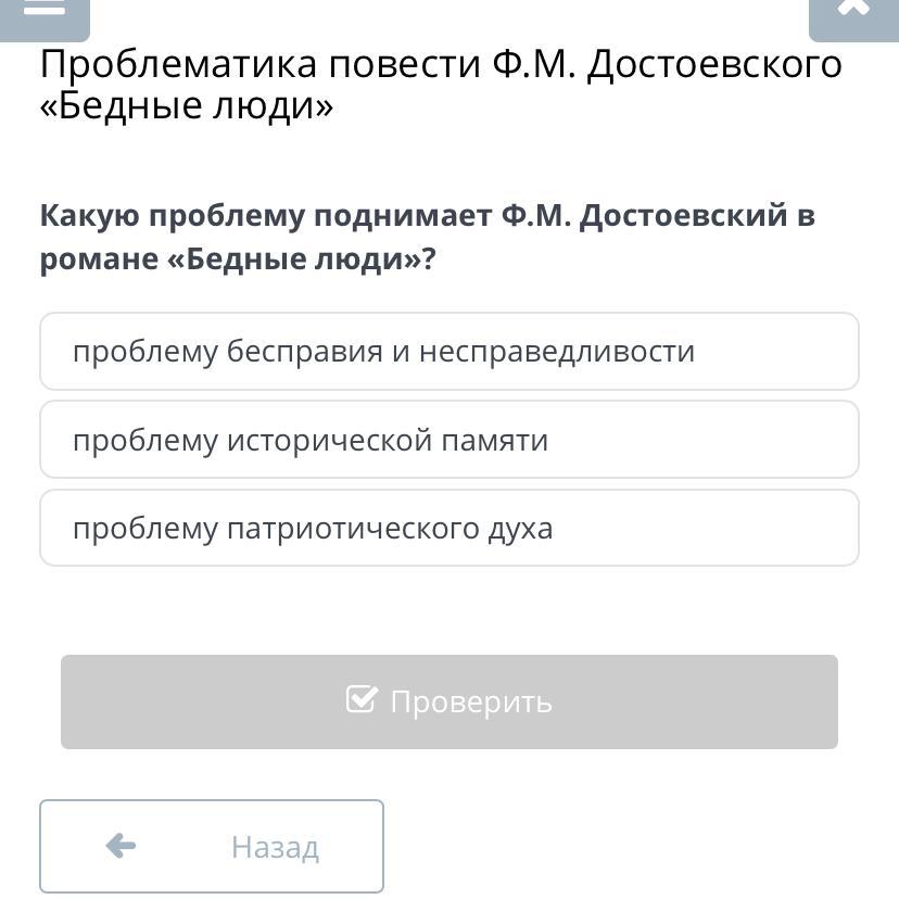 В романе «Бедные люди» Ф. Достоевский поднимает ряд проблем, актуальных во все времена. Для того чтобы раскрыть их полно, оригинально, автор использовал эпистолярную форму. Таким образом, анализируя ту или иную проблему, читатель может наблюдать за психологическим состоянием героев.