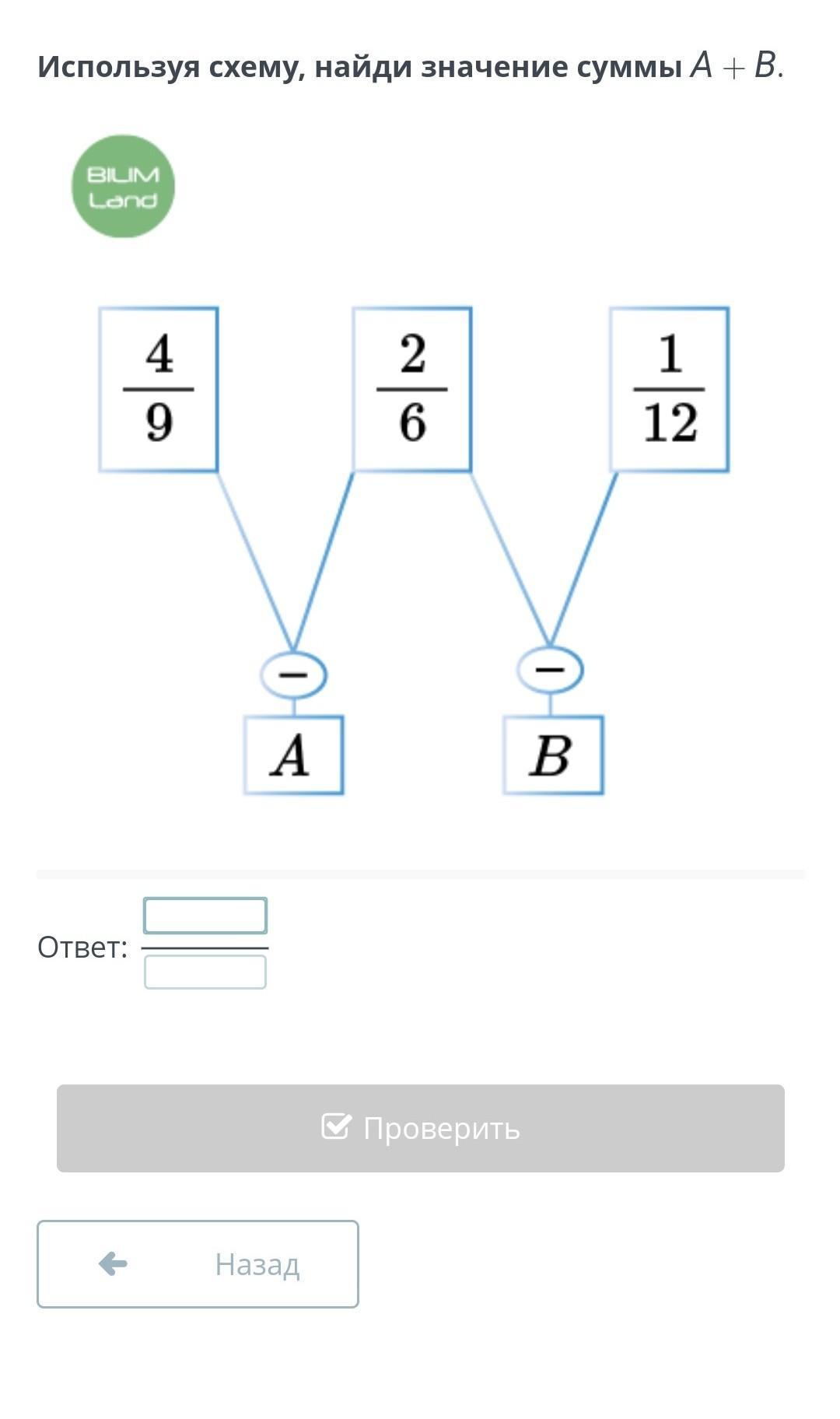 А = 4/9 - 2/6 = 4/9 - 1/3 = 4/9 - 3/9 = 1/9.