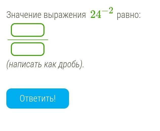 24-² = 1 / 24² = 1/576 (т.е. сверху один, снизу 576)