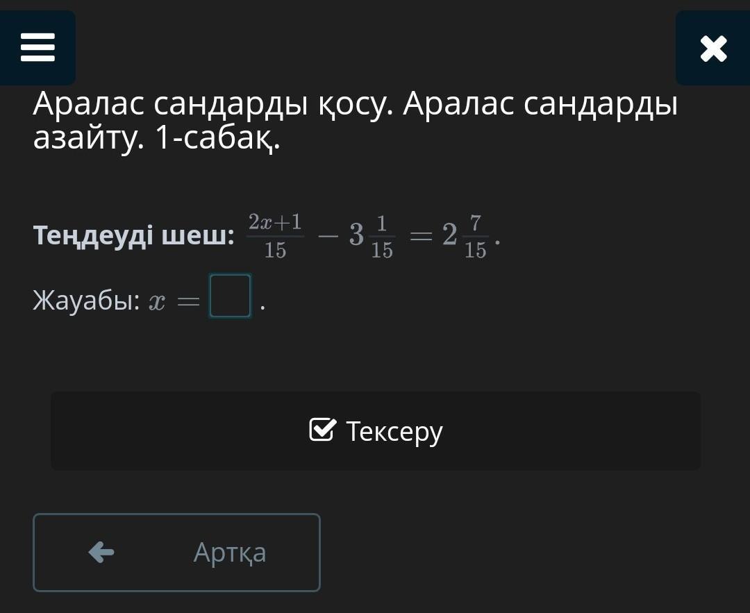 (2x + 1) / 15 - 46 / 15 = 37 / 15;