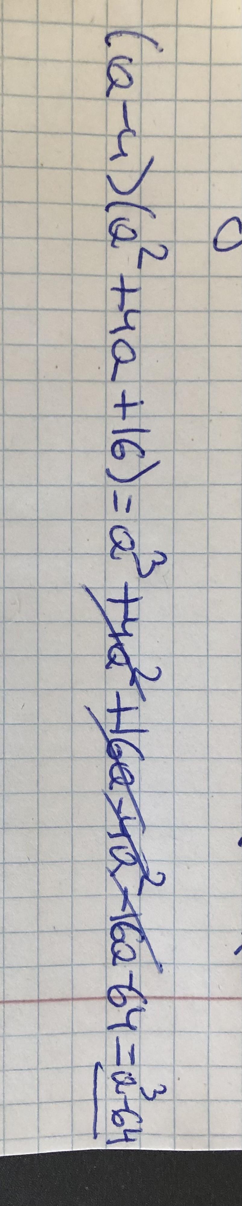 (a-4)(a²+4a+16)=a•a²+a•4a+a•16-4•a²-4•4a-4•16=a³+4a²+16a-4a²16a-64=a³-64
