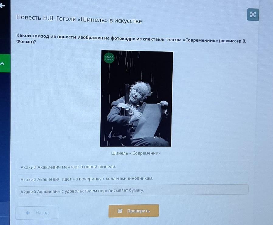 Какой эпизод из повести изображен на фотокадре из спектакля театра «Современник» (режиссер В.