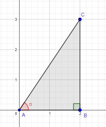 По определению тангенсом угла называют отношения противолежащего катета к прилежащему в прямоугольном треугольнике. Так как tg α = 1,5 ,то число 1,5 можно представить как дробь . Построим прямоугольный треугольник с катетом AB = 2, BC = 3 (смотрите рисунок), угол ∠ABC = 90°.