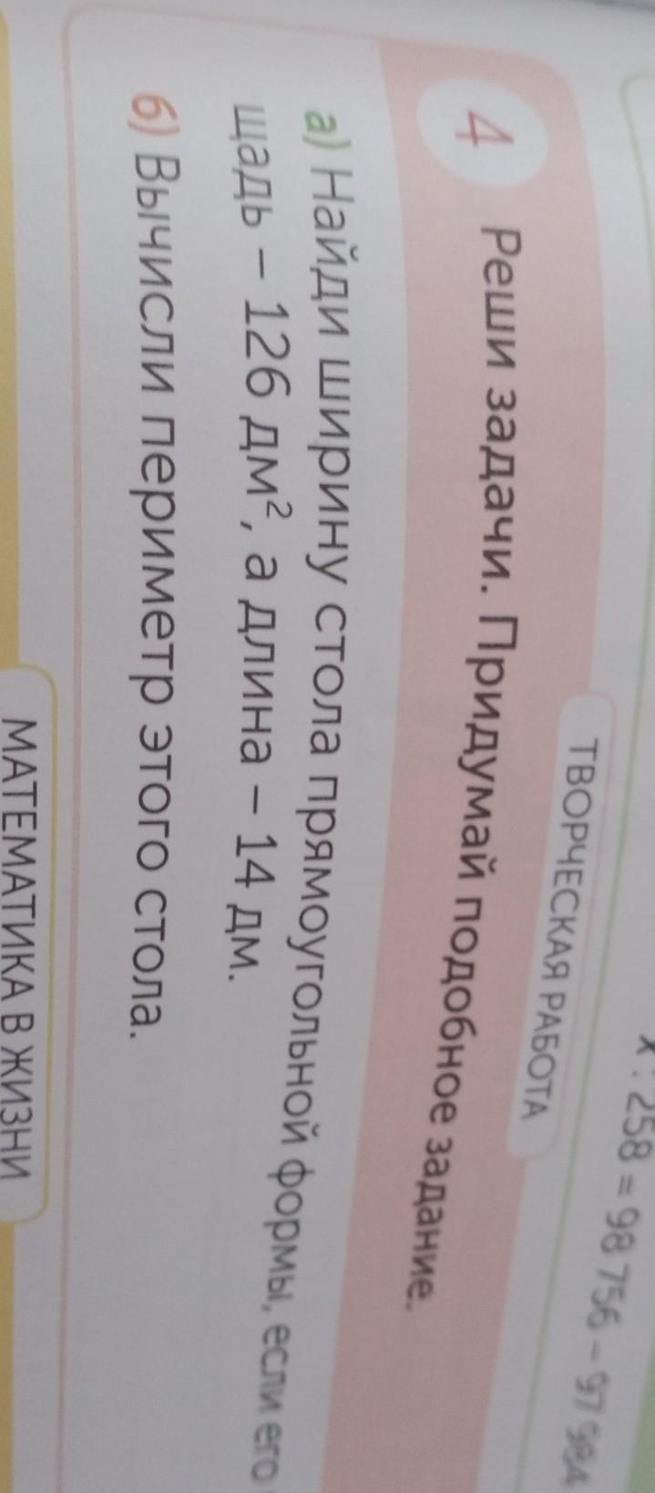 а) Найди ширину стола прямоугольной формы, если его пло-