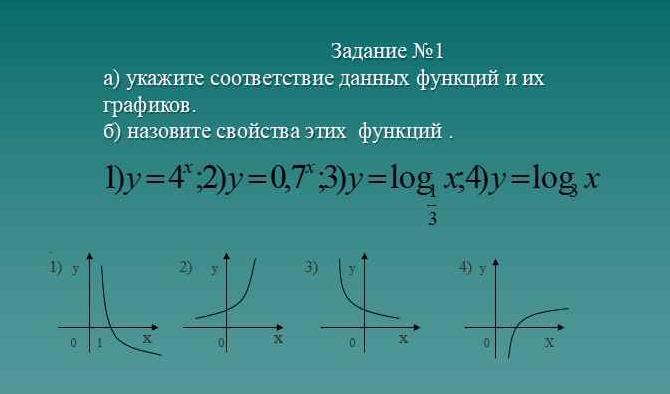4) 4 график . Логарифм по целому основанию при х большем 1 степнеь положительна.а при дробном значении Х ,степень числа большего 1 отрицательна. Возрастает при всех Х.