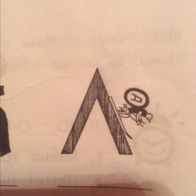 Первая буква А в виде рюкзака на человечке (она написана как прописная строчная буква) а вторая буква А в этом рюкзачке