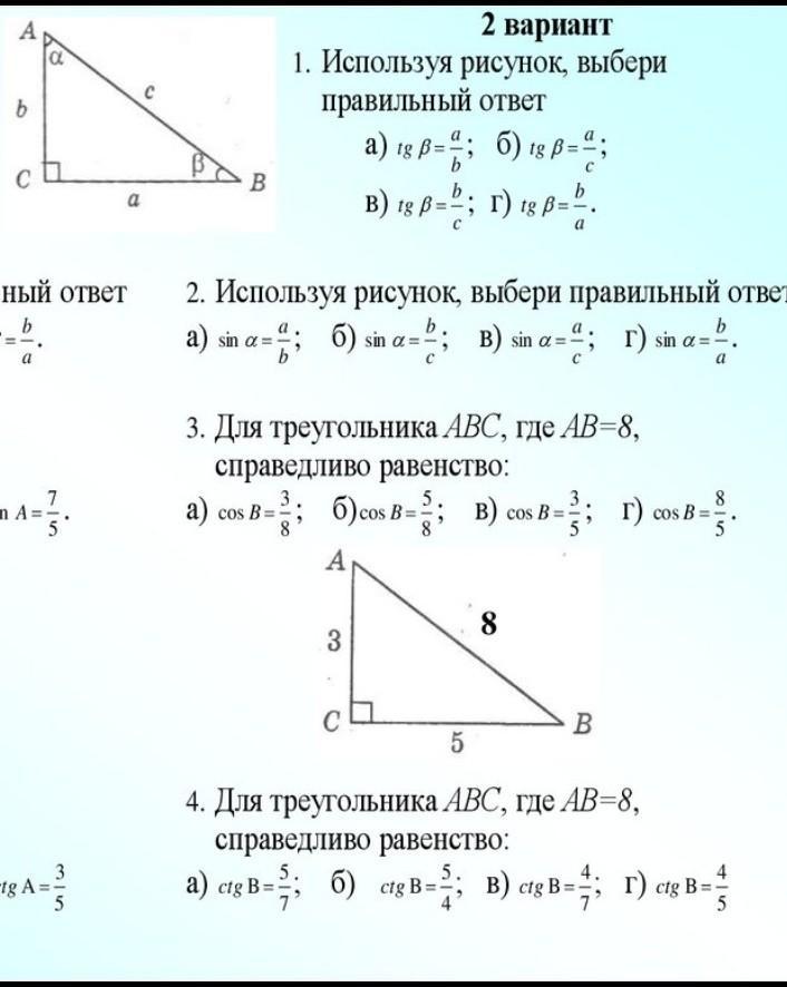 4. ctg(в)=5/3 - нет такого варианта ответа.