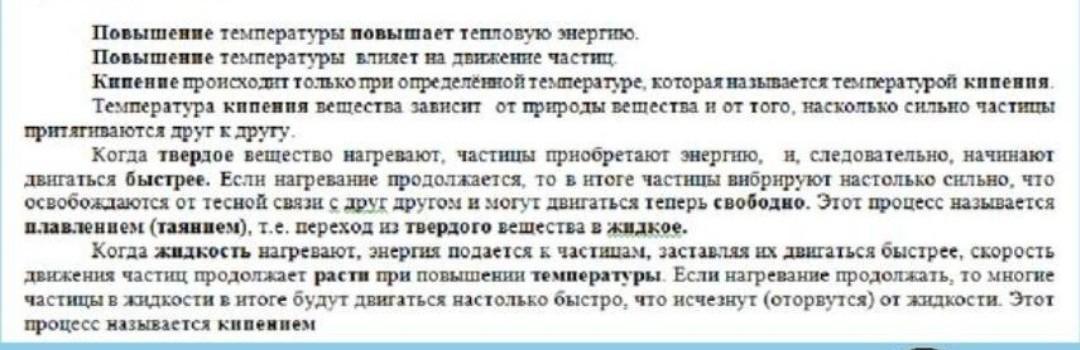 Когда ……………… вещество нагревают, частицы приобретают энергию, и, следовательно, начинают двигаться ………………… Если нагревание продолжается, то в итоге частицы вибрируют настолько сильно, что освобождаются от тесной связи с друг другом и могут двигаться теперь ………………... Этот процесс называется ………………….. т.е. переход из ………………….вещества в …………………..