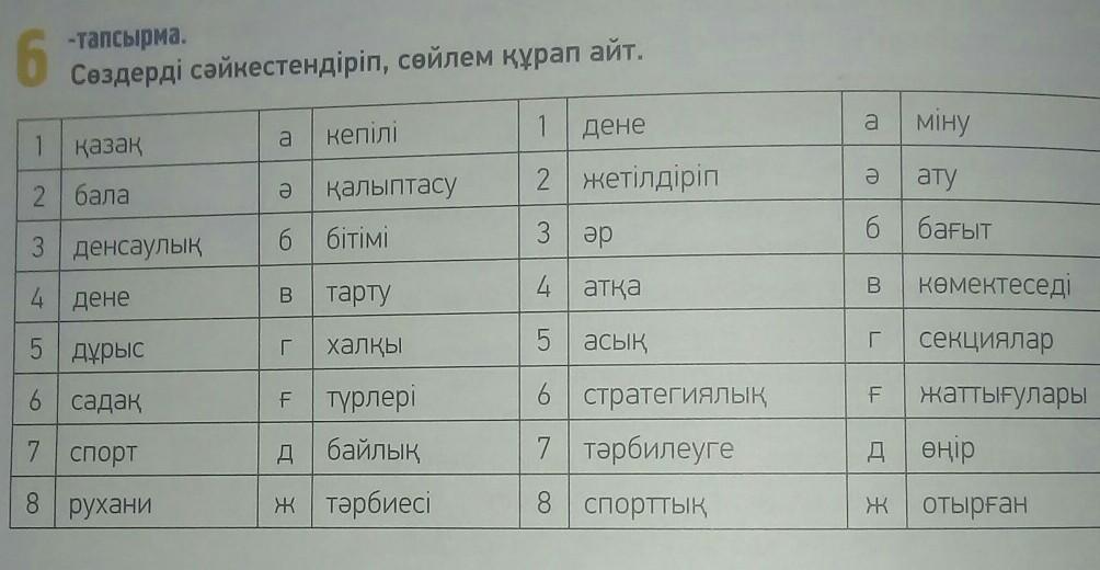 Сөздерді сәйкестендіріп, сөйлем құрап айт.