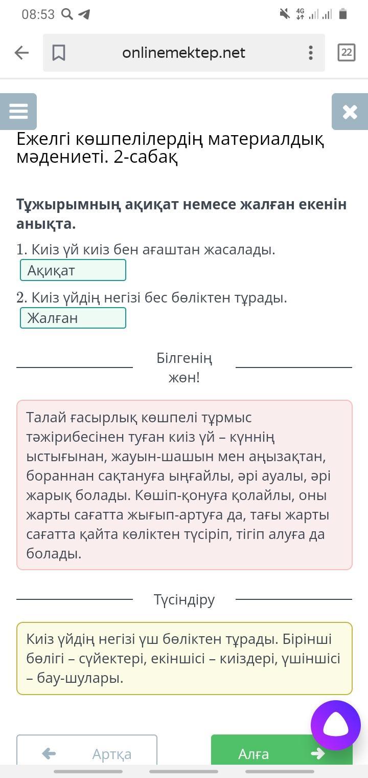 1. Киіз үй киіз бен ағаштан жасалады.