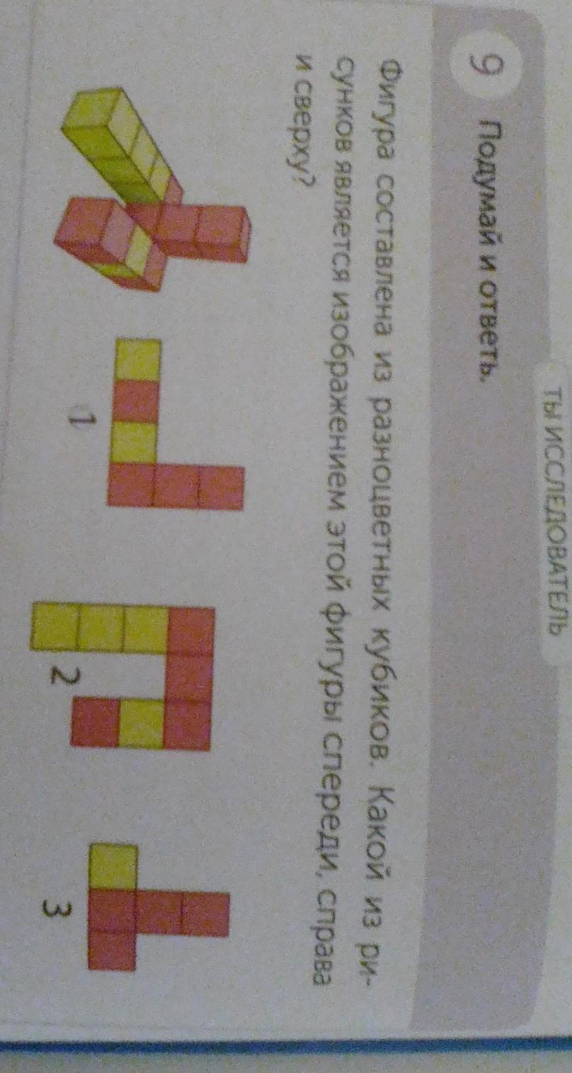 фигура составлена из разноцветных кубиков Какой из рисунков является изображённым этой фигуры спереди справа и сверху