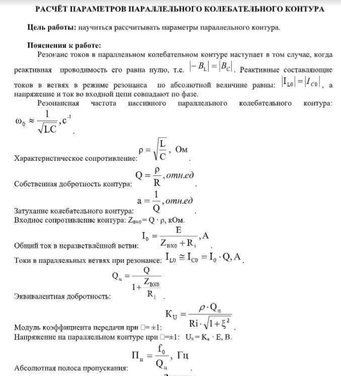 частоты ω 0 и f 0 , характеристическое сопротивление ρ, добротность Q, затухание а.