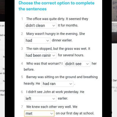 1 hadn't cleaned 2 had had 3 had been raining 4 hadn't seen 5 had been running 6 had left 7 had met