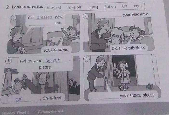 Ответ:1 hurry 2 put on 3 coat 4 take off