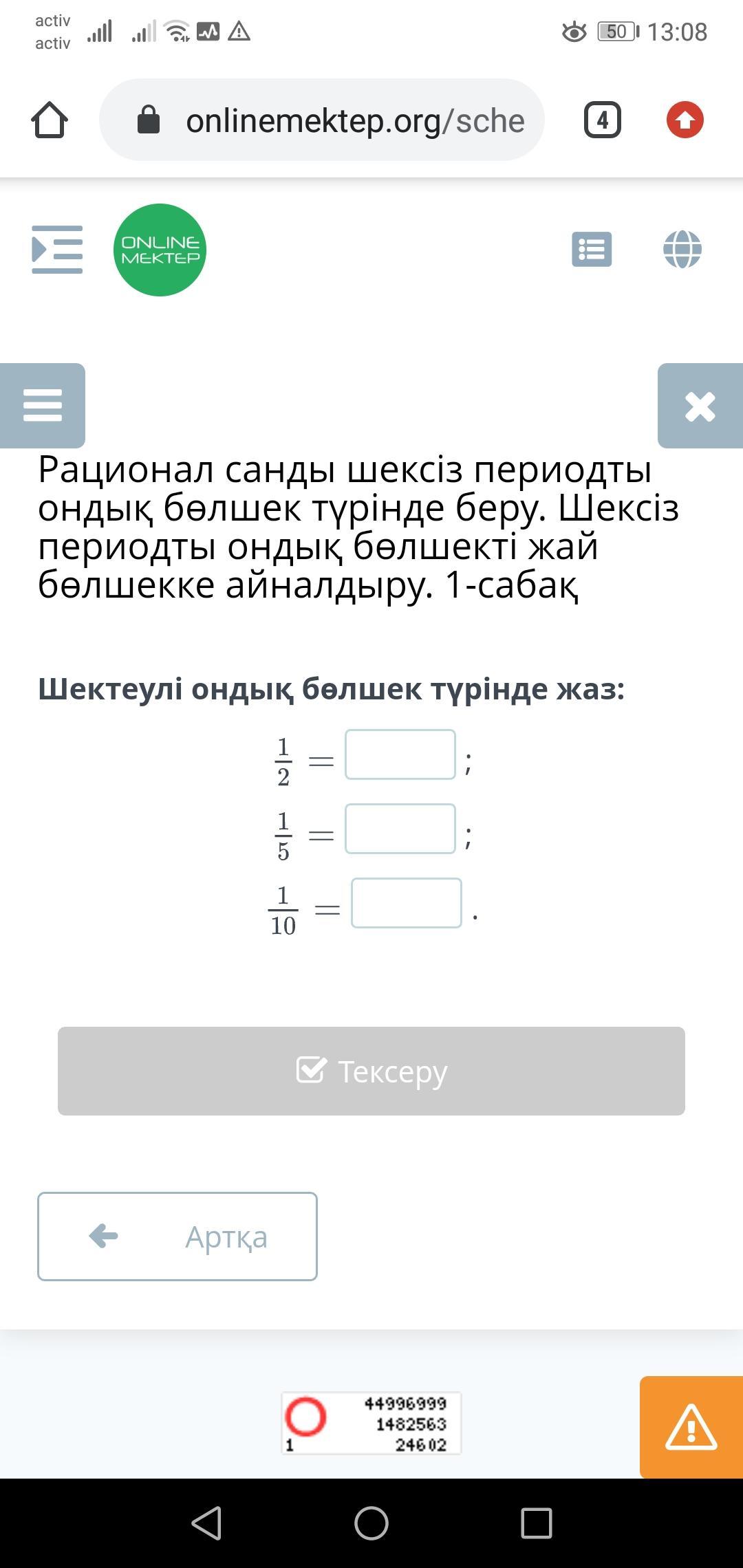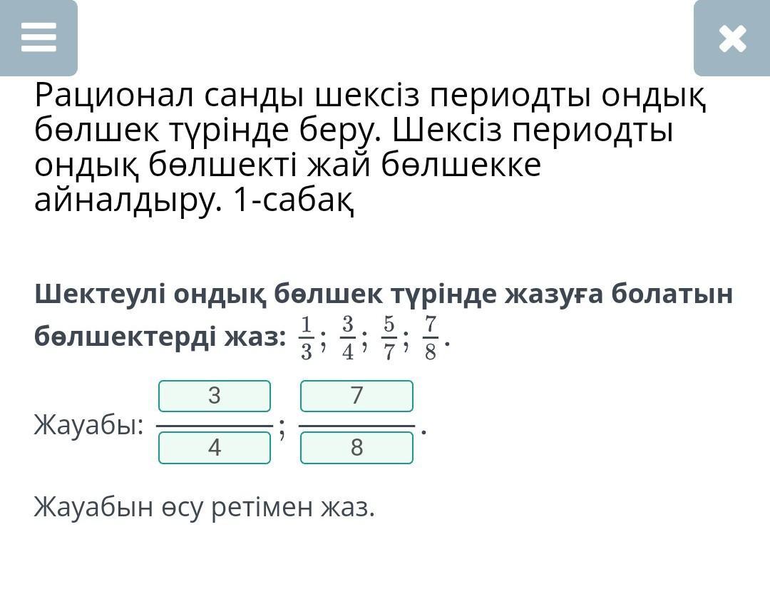 5 тапсырма:Рационал санды шектеулі ондық бөлшек түрінде жаз: 2,6 ; 0,035 ; 0,08