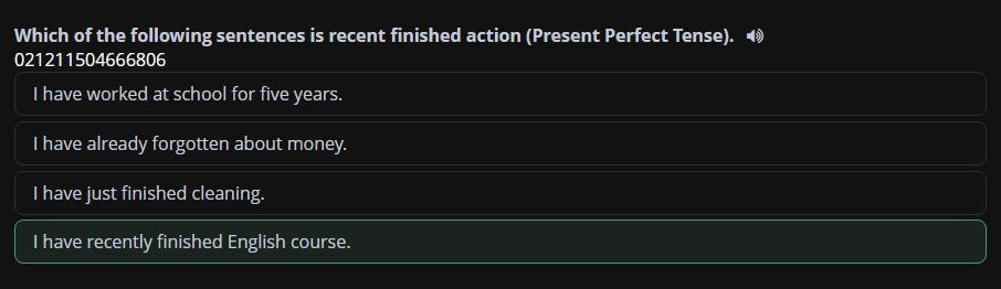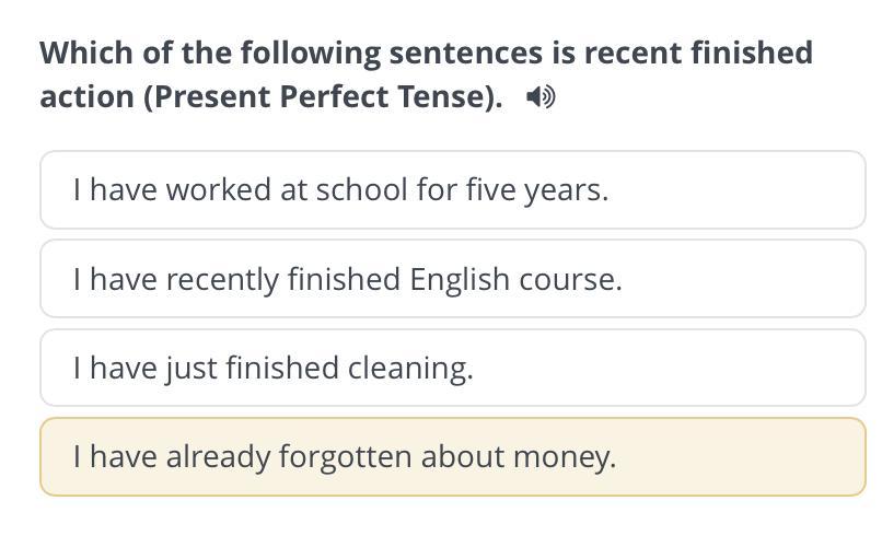 Which of the following sentences is recent finished action (Present Perfect Tense).