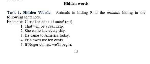 Ответ:2 bear 3camel 4cow 5frog