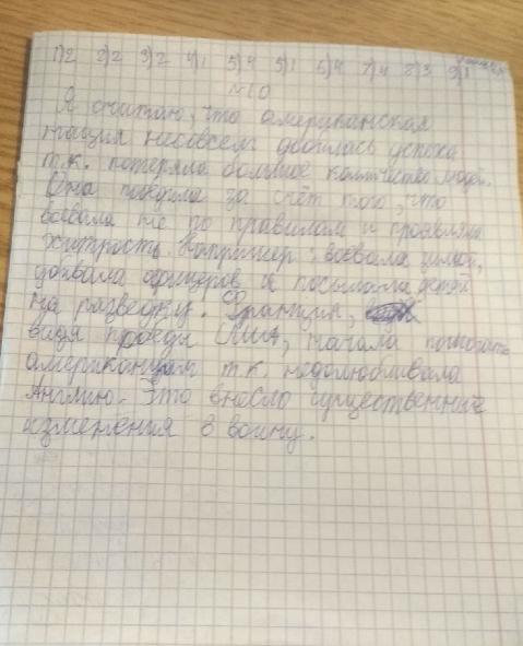 (В сочинение вам нужно порассуждать, действительно-ли американская нация добилась успеха? Перечислить основные причины успеха американцев в борьбе против Англии. И обязательно, дать оценку внешнеполитическим событиям, которые повлияли на победу США.)