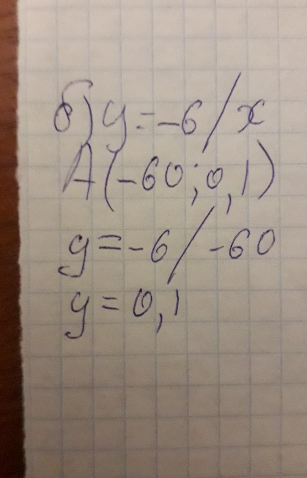 б). Принадлежит ли графику функции y = -6/х точка А (-60; 0,1 ?