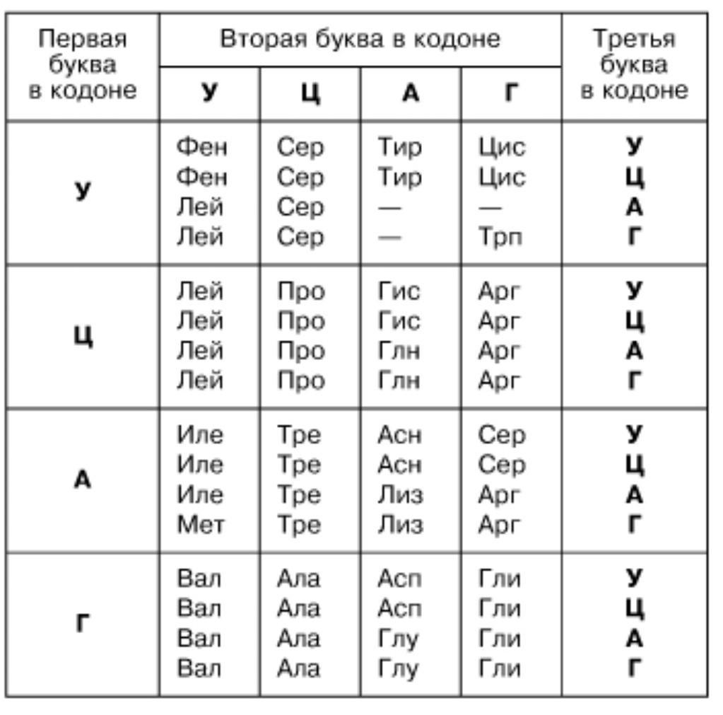 Кодоны и.РНК можно перевести в аминокислоты с помощью таблицы: