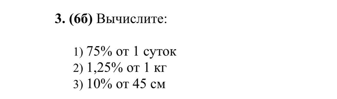 1) 75% от 1 суток = 75% от 24 часов = 24/100*75=18 часов