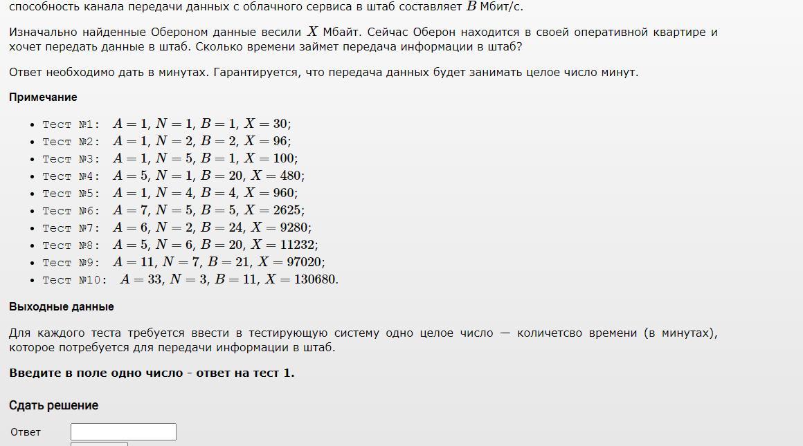 На последнем секретном задании шпион под кодовым именем Оберон нашел жесткий диск с важными засекреченными данными. Он сумел быстро скопировать необходимую информацию на свой ноутбук и скрыться. Однако ему необходимо передать данные в штаб для их дешифровки. Передача данных происходит через облачное хранилище следующим образом: