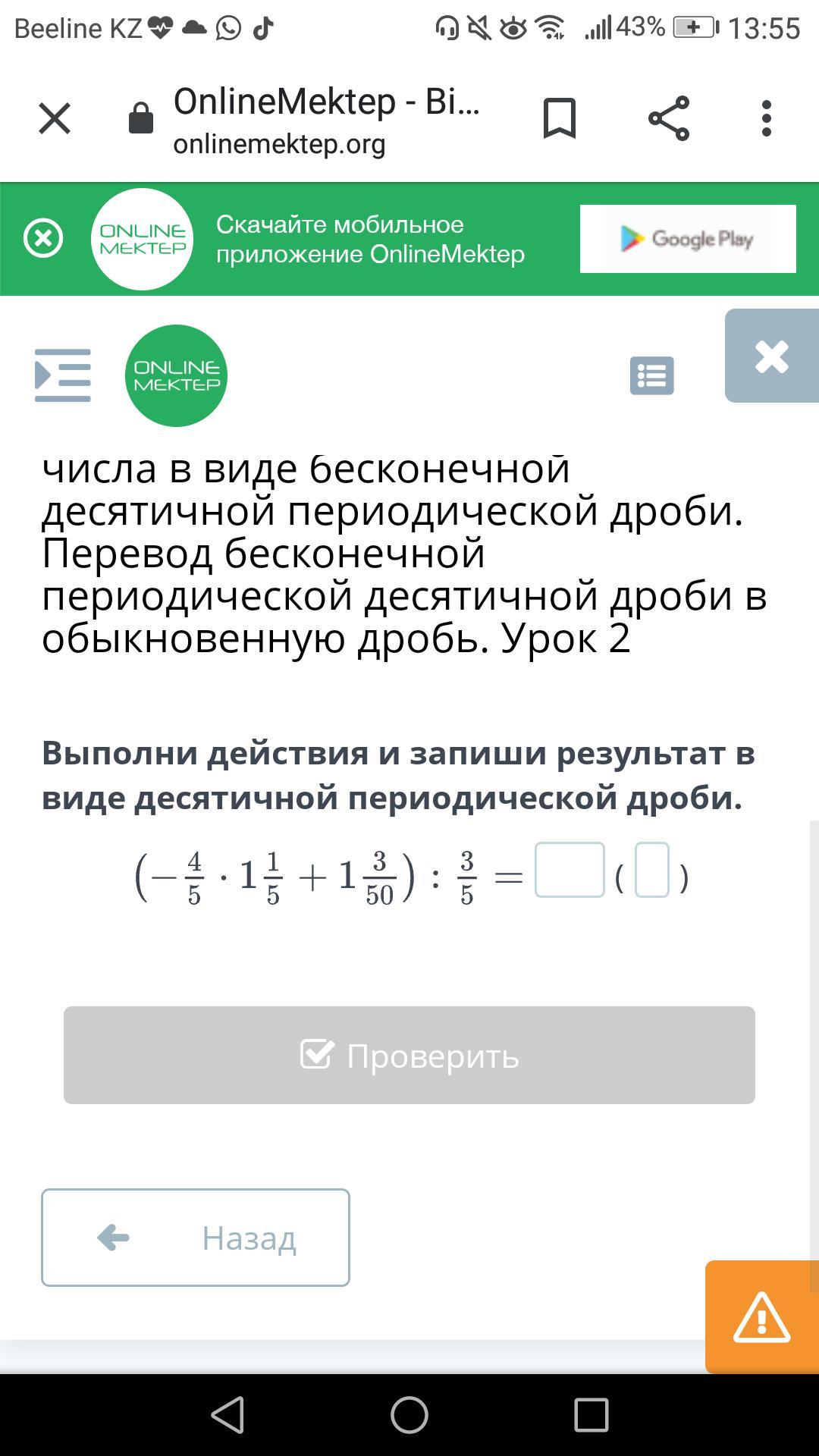 Выполни действия и запиши результат в виде десятичной периодической дроби.
