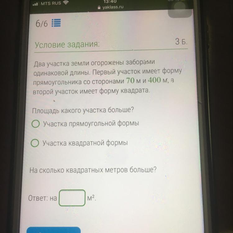 блин вот я сделал но незнаю короче на 27225 большем2 .участка формы крадрата . я незнаю как проверить или где проверить
