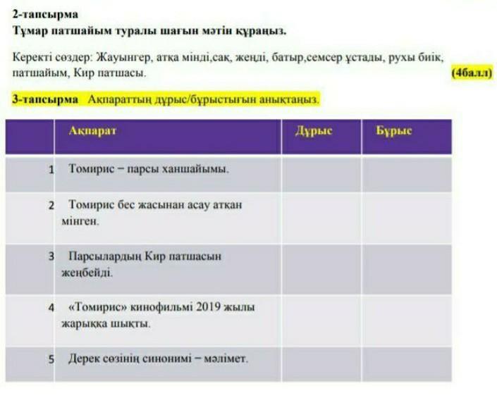 помогите пожалуйста! Даю 11 балл! 3 тапсырма и 2 тапсырма! только правильно!