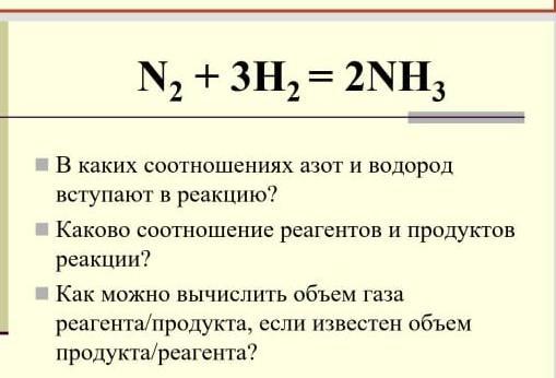 - Реагенты - 1+3 = 4 молекулы; Продукты - 2 молекулы. Соотношение - 4:2