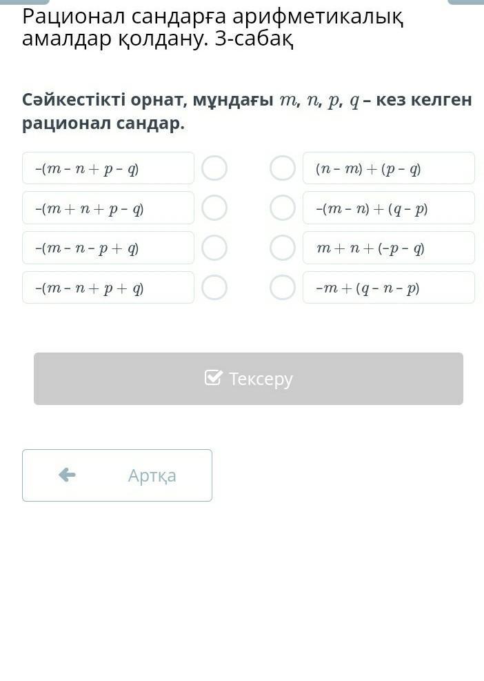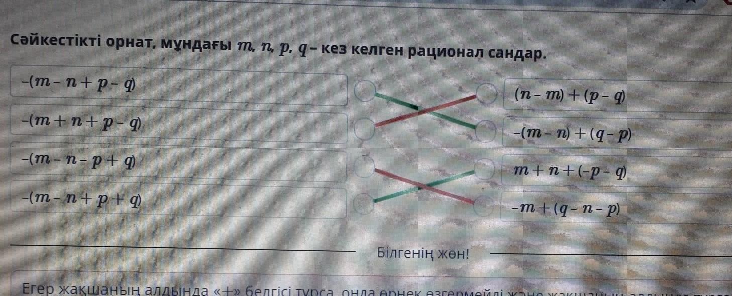 Сәйкестікті орнат, мұндағы m, n, p, q – кез келген рационал сандар.