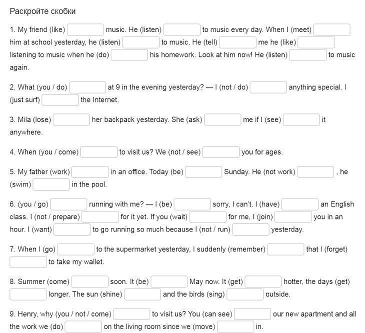 1. My friend likes music. He listens to music every day. When I met him at school yesterday, he was listening to music. He tells me he likes listening to music when he does his homework. Look at him now! He is listening to music again.