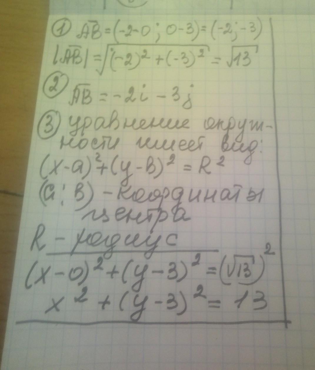 3. Напишите уровнение с окружностью с центром точки А и радиусом АВ