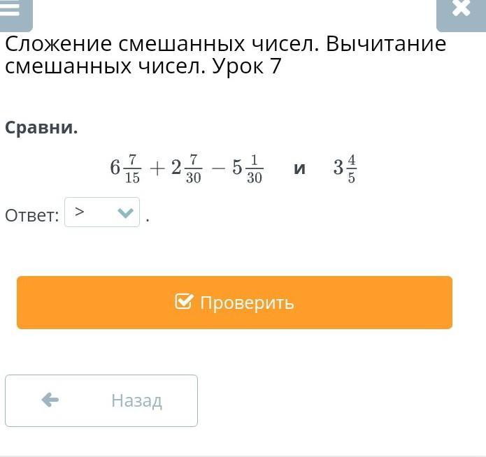 За так 6 целых 7 15дцатых + 2 целых 7 30дцатый - 5 целых 1 30дцатая и 3 целых 4 5тых больше?