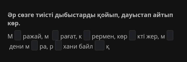 Әр сөзге тиісті дыбыстарды қойып, дауыстап айтып көр.