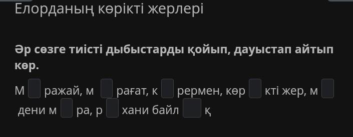 Әр сөзге тиісті дыбыстарды қойып, дауыстап айтып көр.