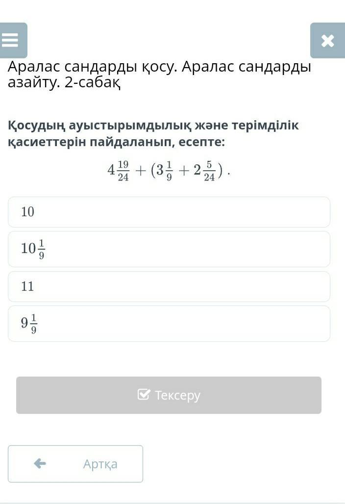 4 19/24 + (3 1/9 + 2 5/24) = 4 19/24 + (3 8/72 + 2 15/72) = 4 19/24 + 5 23/72 = 4 57/72 + 5 23/72 = 9 80/72 = 10 8/72 = 10 1/9