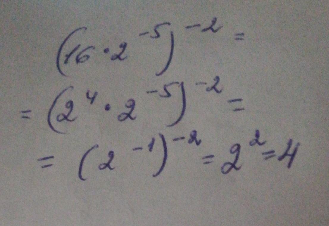 Пожалуста:(2^4×2-5)^-2=(2^-1)^-2=2^2=4