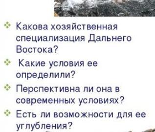 1. Хозяйственную специализацию ДВЭР на современном этапе определяют : = рыбное хозяйство (рыболовство и рыбоперерабатывающая промышленность ), = портово-транспортное хозяйство (порты и морской транспорт), = добывающие отрасли промышленности .