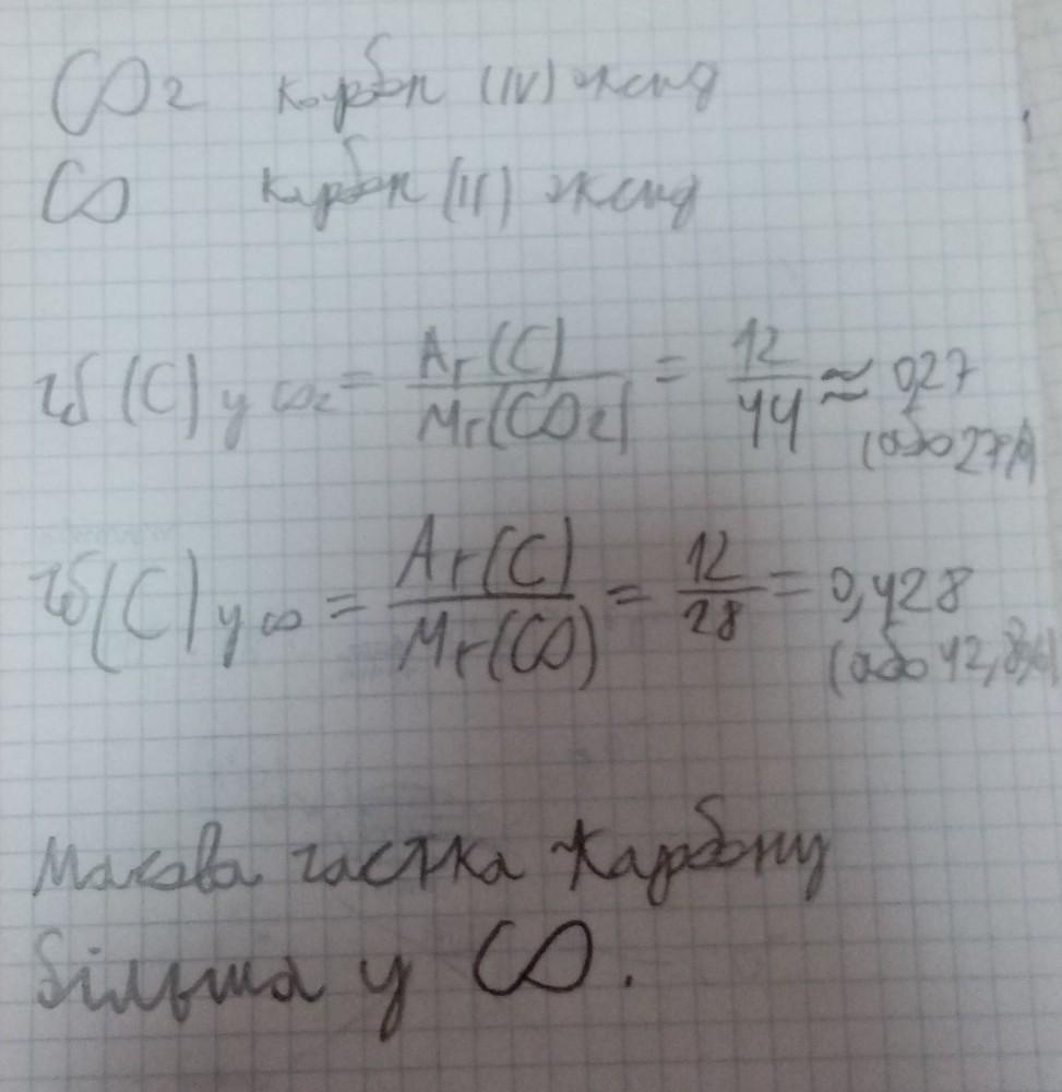 складіть формули сполук карбону з оксигеном де карбон буде двох та чотирьох валентний визначити в якій із сполуку масова частка карбону буде більше