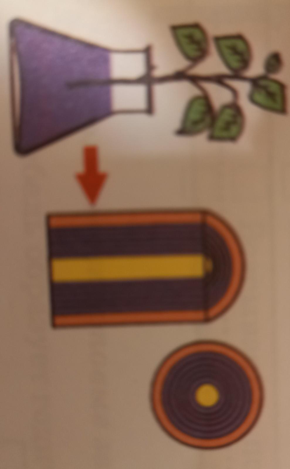 3. В стакан с подкрашенной чернилами водой поставили ветку растения. Какая часть