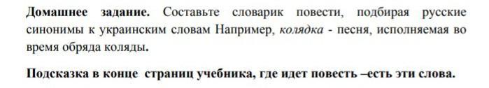составьте словарик повести ,подбирая русские синонимы к украинским словам например , колядка - песня ,исполняемое во время обряда коляда