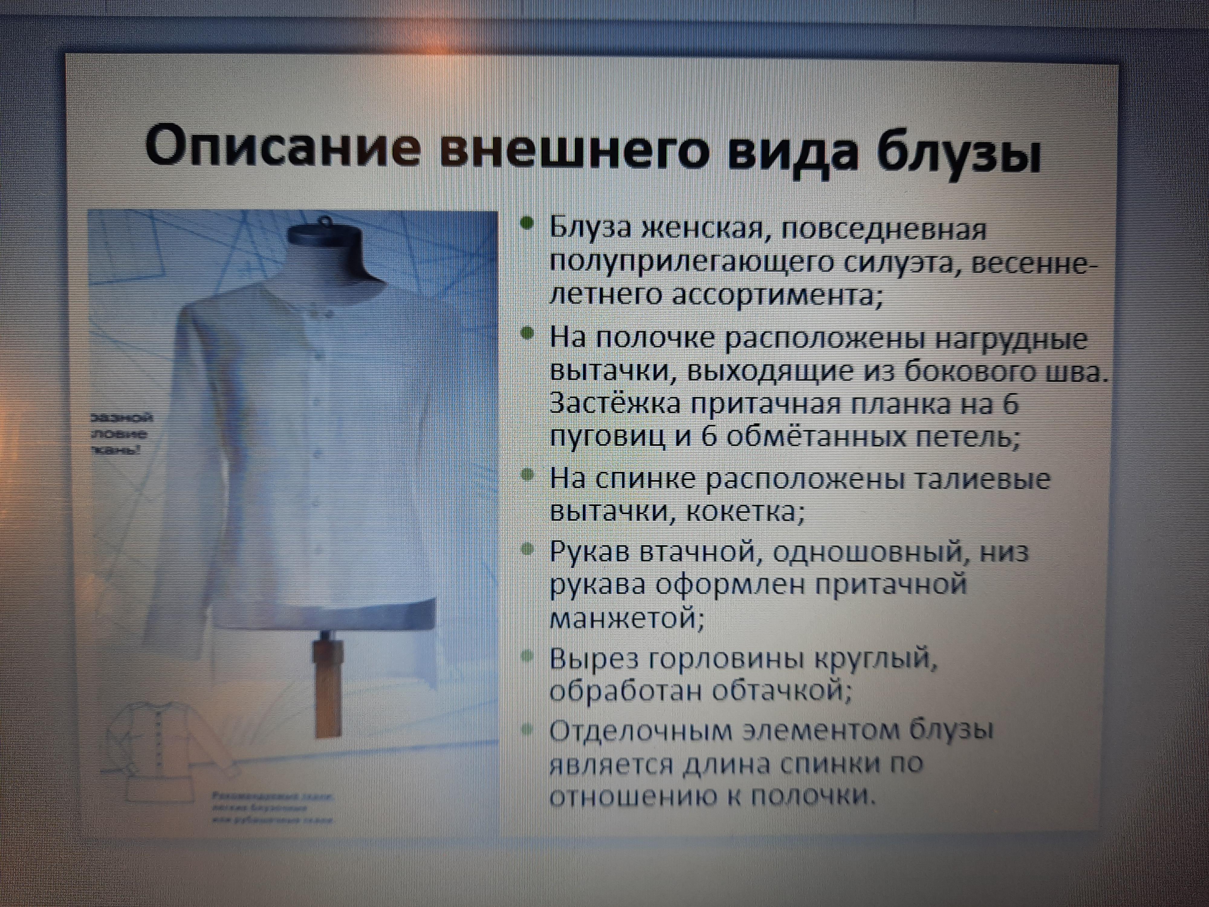 Выполните описание внешнего вида блузы по плану как на 2 фото