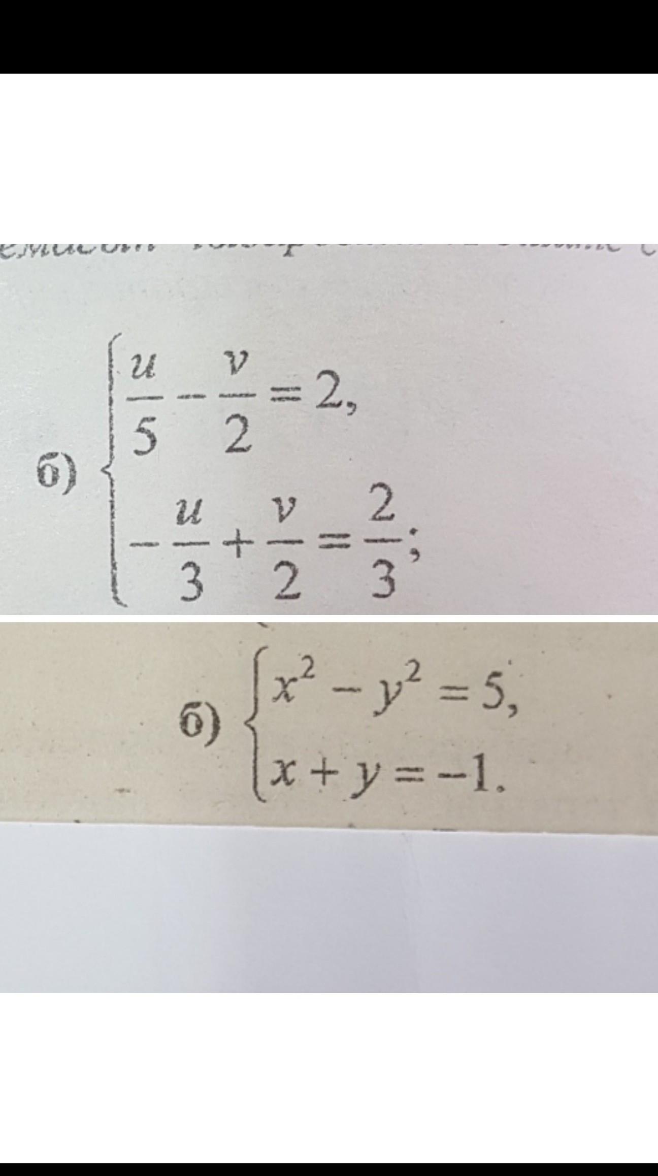 1) 2u - 5v = 20 х^2 -у^2 = 5