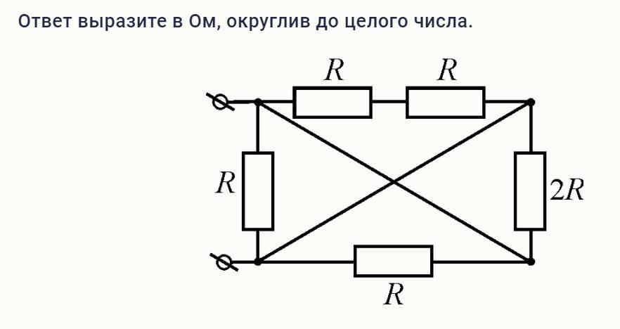 Найдите полное сопротивление участка цепи, если R=1 кОм. Электрический контакт между скрещенными проводами, изображёнными в центральной части схемы, отсутствует.