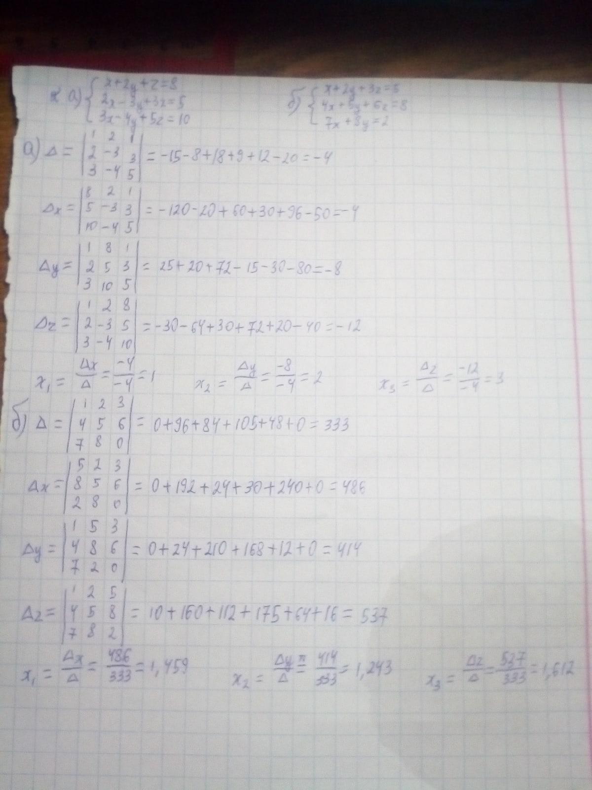 Метод Крамера решается таким образом: