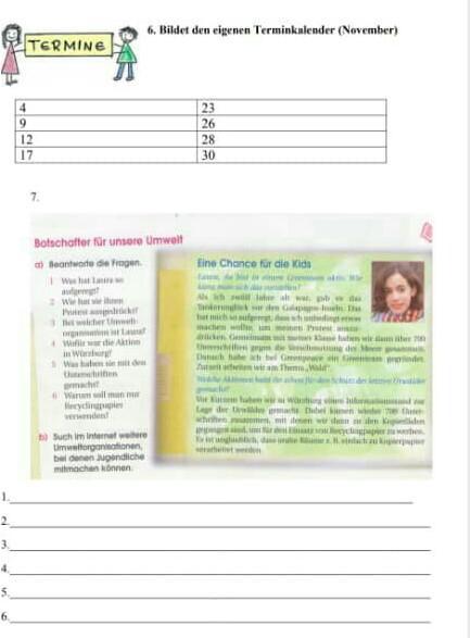6. Es ist unglaublich, dass uralte Bäume zum Beispiel einfach zu Kopierpapier verarbeitet werden. Deshalb gingen Laura und ihr Greenteam zu den Kopierläden, um den Einsatz von Recyclingpapier zu werben .