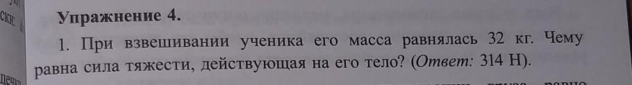 F = mg | F = 32 × 9.8 = 313.6 ≈ 314 H