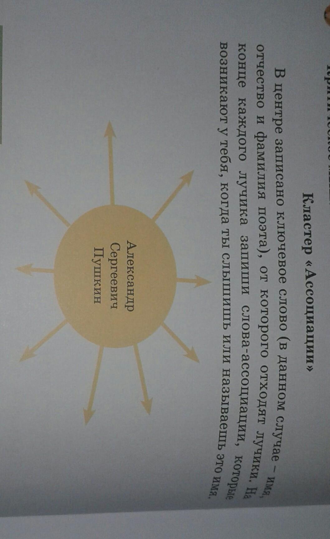 Литература пятый класс записано ключевое слово данном случае имя отчество и фамилия поэта от которого отходят звучки конце каждого луча Запиши слова ассоциации которые возникают У тебя когда ты слышишь или название этого имя Александр Сергеевич Пушкин